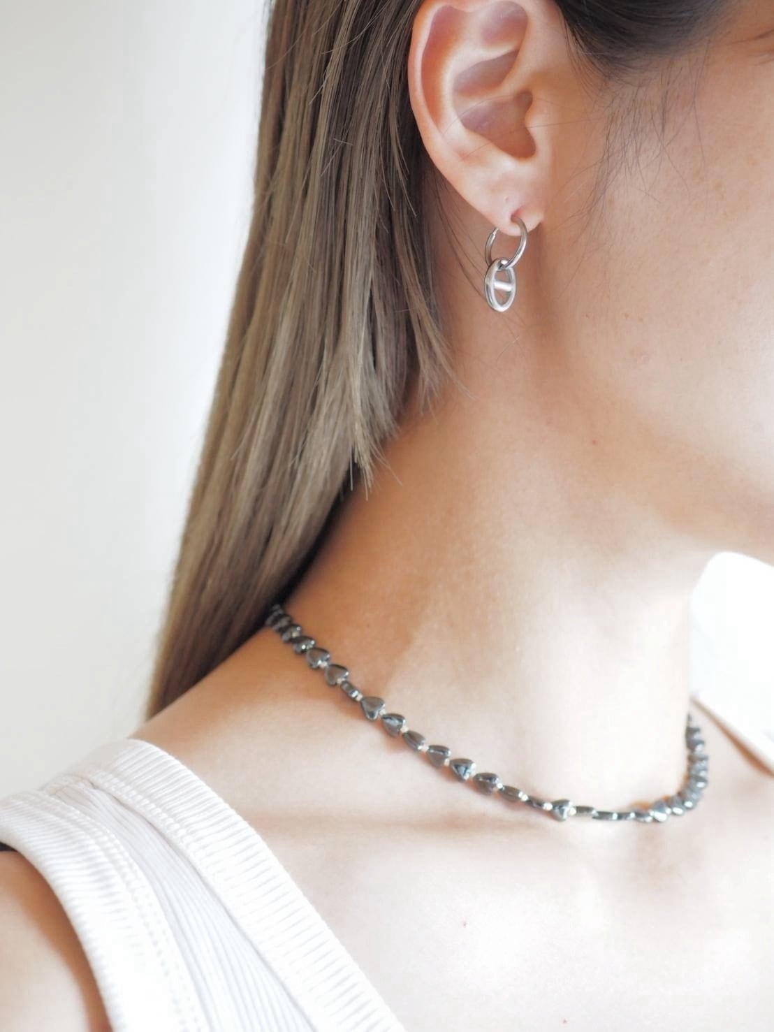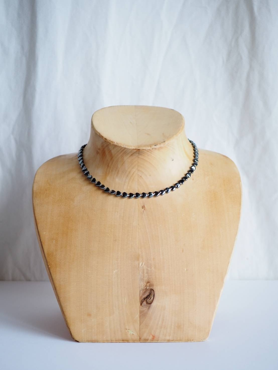 ◎個性的な印象を与える、Hematite "heart" necklaceです。