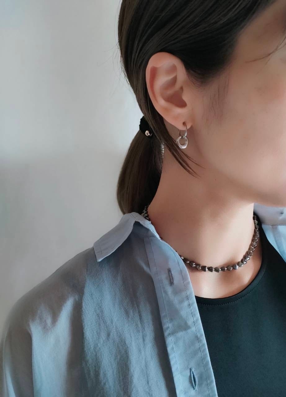 このネックレスは、光を受けて反射するヘマタイトの美しい輝きが特徴で着用することで神秘的な雰囲気を演出します。