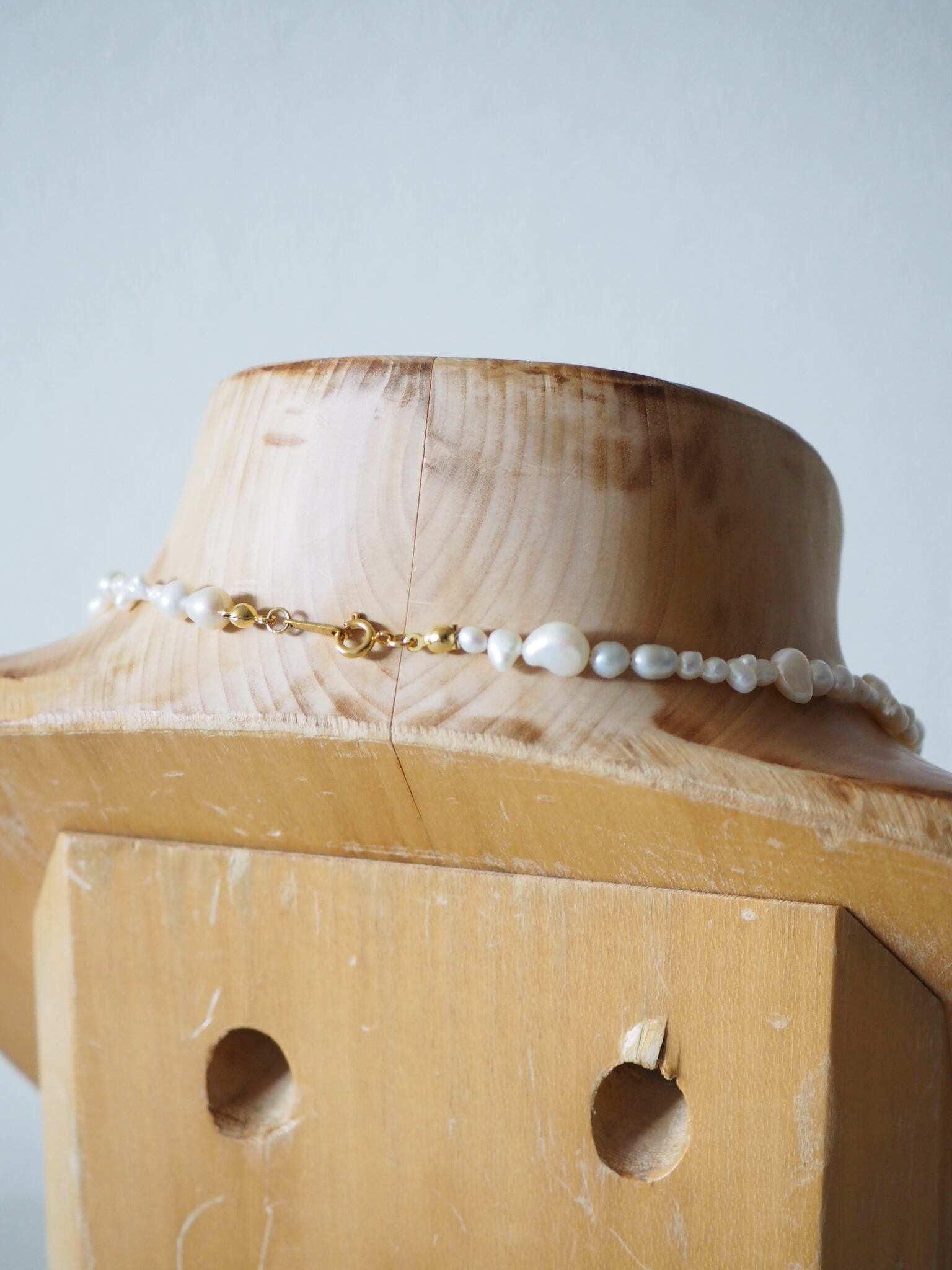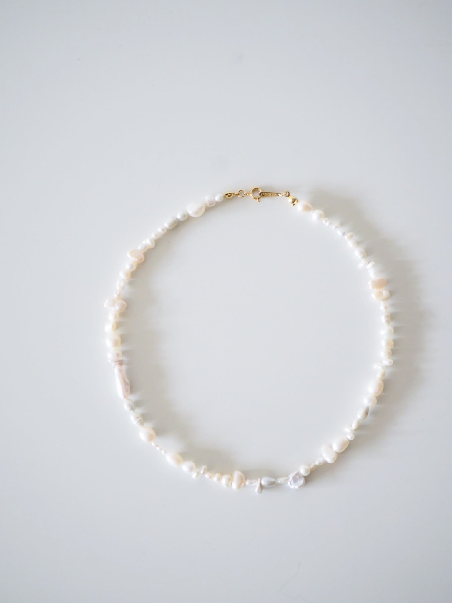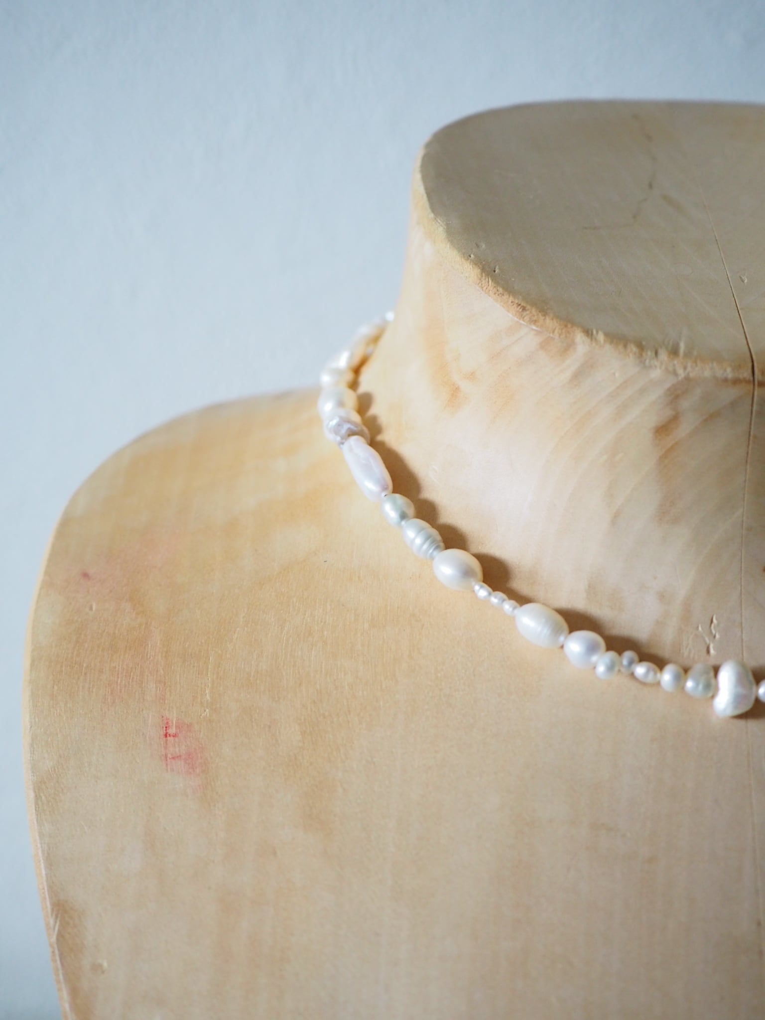 ◎あなたの存在感をさらに引き立てる、various freshwater pearl necklaceです。不均一な淡水パールが織り成す多数の表情は、丸型では味わえない独特の陰影を生み出し、どんなシーンでも目を引くこと間違いなしです。このネックレスは、シンプルでありながらも、深みのある美しさを持ち、普段使いから特別なイベントまで幅広くお楽しみいただけます!